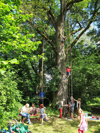 in der Herberge oder in Zelten auf dem Aktivhof in Schlehdorf, oder in Pensionen oder Hotels in der Nähe, jede, wie sie mag.