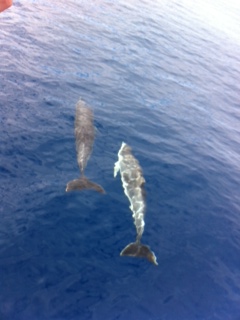 4.1. Überfahrt zurück nach Teneriffa, Radazul, in der Abdeckung der Insel muss der Motor bei Ostwind schuften.Eine Gruppe von kleinen Walen begeleitet uns, schwimmt dem Schiff voraus und erfreut uns mit ihrer Spielerischen Freude. Zeit seinen Gedanken nachzuhängen…